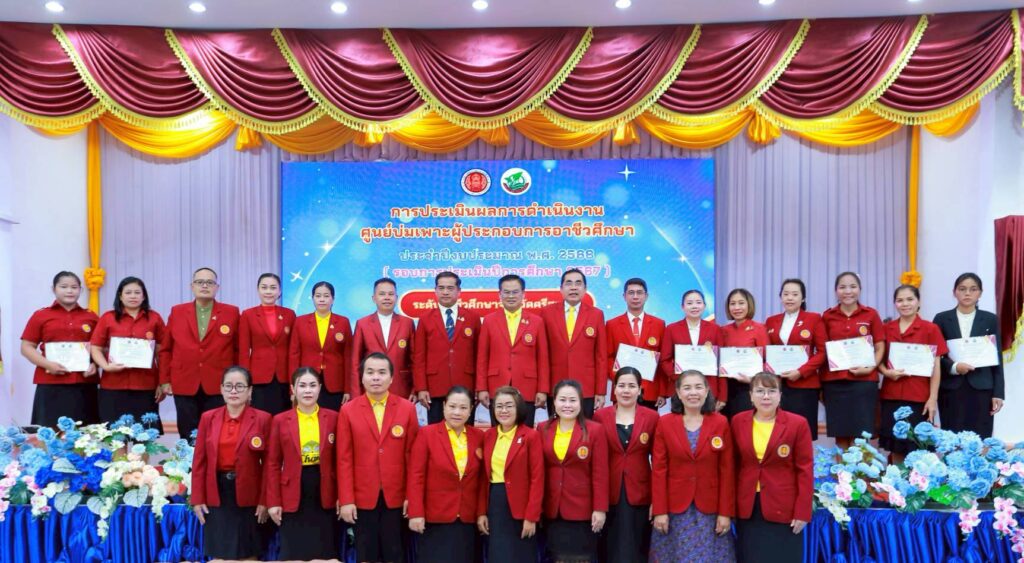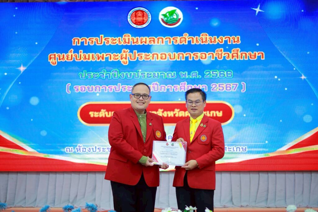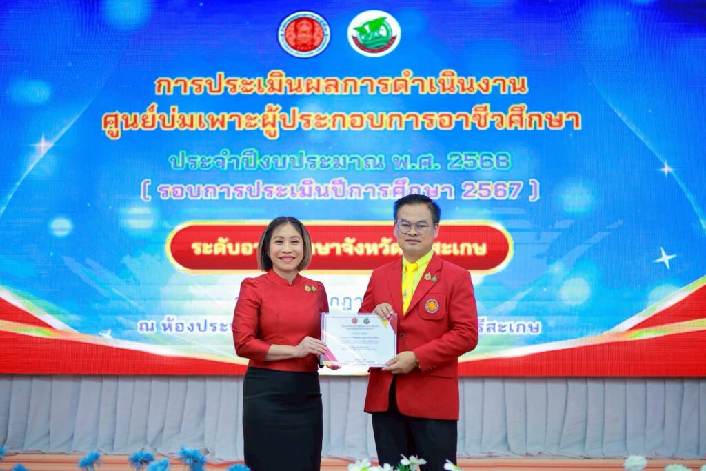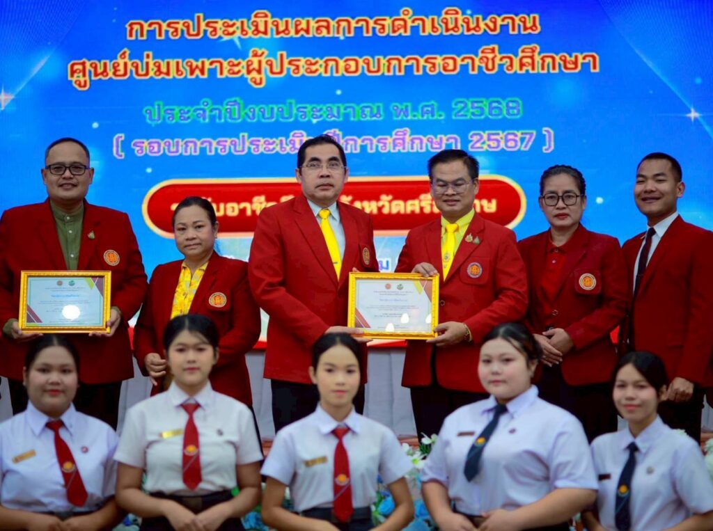 วันที่ 30 กรกฎาคม 2568 นำโดย นายวิโรจน์ ธิมา ผู้อำนวยการวิทยาลัยการอาชีพศรีสะเกษ นายกรณ์ ก้านเพชร รองผู้อำนวยการฝ่ายแผนงานและความร่วมมือ พร้อมด้วยคณะกรรมการดำเนินงานศูนย์บ่มเพาะผู้ประกอบการอาชีวศึกษา เข้ารับการประเมินผลการดำเนินงานศูนย์บ่มเพาะผู้ประกอบการอาชีวศึกษา ระดับจังหวัด ประจำปีงบประมาณ พ.ศ.2568 (รอบการประเมินปีการศึกษา 2567) โดยมีผลการประเมิน “ผ่านการประเมิน” ตามโครงการติดตามประเมินผลและยกย่องเชิดชูเกียรติสถานศึกษาในการดำเนินการ “โครงการส่งเสริมการประกอบอาชีพอิสระในกลุ่มผู้เรียนอาชีวศึกษา” ระดับจังหวัด (ระดับ 3 ดาว) ณ ห้องประชุม T -VET วิทยาลัยเทคนิคศรีสะเกษ