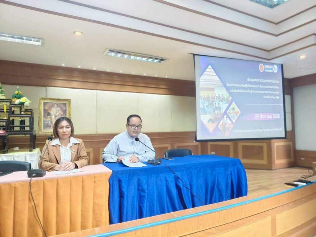 วันที่ 25 กรกฎาคม 2568 นายวิโรจน์ ธิมา ผู้อำนวยการวิทยาลัยการอาชีพศรีสะเกษ มอบหมายให้ นายกรณ์ ก้านเพชร รองผู้อำนวยการฝ่ายแผนงานและความร่วมมือ เป็นประธานในที่ประชุมคณะกรรมการดำเนินโครงการ “อบรมเชิงปฏิบัติการการเขียนแผนธุรกิจ และการสร้างจิตสำนึกในการเป็นผู้ประกอบการ” ปีการศึกษา 2568 โดยมี หัวหน้าศูนย์บ่มเพาะฯ คณะกรรมการดำเนินงานศูนย์บ่มเพาะฯ หัวหน้าแผนกวิชา ครูที่ปรึกษาธุรกิจ และบุคลากรทางการศึกษา เข้าร่วมประชุม ณ ห้องประชุมชั้น 1 อาคารวิทยบริการ วิทยาลัยการอาชีพศรีสะเกษ