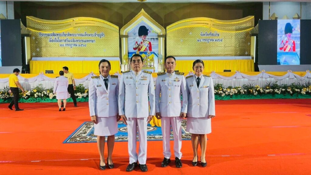 วันที่ 28 กรกฎาคม 2568 นำโดย นายวิโรจน์ ธิมา ผู้อำนวยการวิทยาลัยการอาชีพศรีสะเกษ พร้อมด้วย คณะผู้บริหาร ครู ร่วมพิธีเจริญพระพุทธมนต์และทำบุญตักบาตรถวายพระราชกุศล และพิธีถวายสัตย์ปฏิญาณเพื่อเป็นข้าราชการที่ดีและพลังของแผ่นดิน เนื่องในโอกาสวันเฉลิมพระชนมพรรษาพระบาทสมเด็จพระเจ้าอยู่หัว 28 กรกฎาคม ณ ศาลากลางจังหวัดศรีสะเกษ