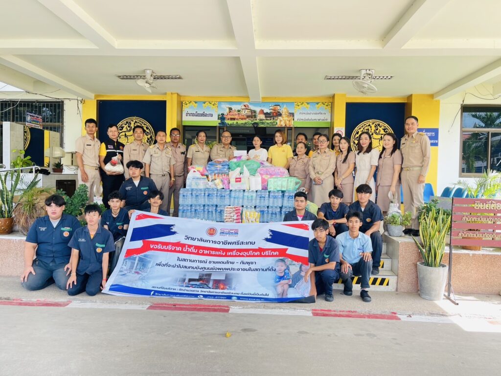 วันที่ 4 สิงหาคม 2568 นายวิโรจน์ ธิมา ผู้อำนวยการวิทยาลัยการอาชีพศรีสะเกษ มอบหมายให้ คณะผู้บริหาร คณะครู บุคลากรทางการศึกษา และตัวแทนนักเรียน นักศึกษา ร่วมบริจาคเงินสดจำนวน 14,270 บาท และส่งมอบอาหารแห้ง น้ำดื่ม และสิ่งของอุปโภคบริโภค เพื่อช่วยเหลือประชาชนในพื้นที่ชายแดน ไทย-กัมพูชา ณ ที่ว่าการอำเภอเมืองศรีสะเกษ