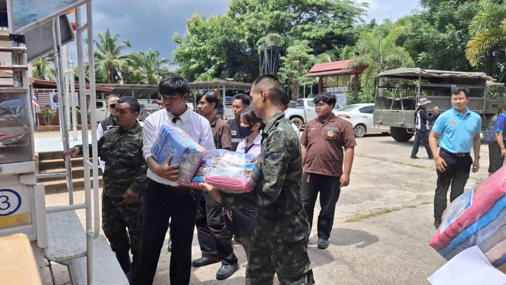 ส่งมอบของบริจาค น้ำดื่ม อาหารแห้ง เครื่องอุปโภค บริโภคให้แก่ผู้ประสบภัยจากสถานการณ์ความไม่สงบชายแดนไทย – กัมพูชา