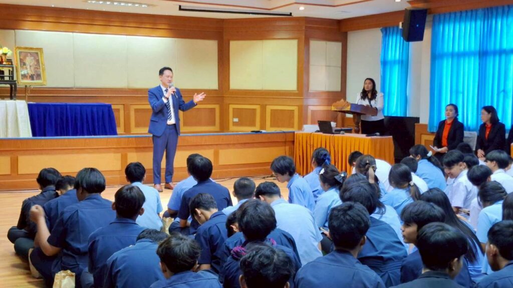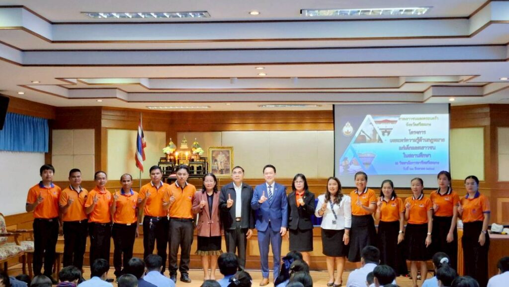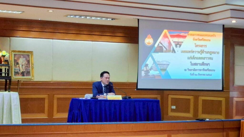 วันที่ 21 สิงหาคม 2568 นำโดย นายวิโรจน์ ธิมา ผู้อำนวยการวิทยาลัยการอาชีพศรีสะเกษ พร้อมด้วย คณะผู้บริหาร ครู และนักเรียน ระดับชั้นปวช.1 ร่วมโครงการเผยแพร่ความรู้ด้านกฎหมายแก่เด็กและเยาวชนในสถาบันการศึกษา (Safe zone No new face) เพื่อช่วยเสริมสร้างความรู้ ความเข้าใจด้านกฎหมายที่จำเป็นต่อการดำรงชีวิตและการเรียนรู้ของเยาวชนในสถานศึกษา ณ ห้องประชุมอาคารวิทยบริการ วิทยาลัยการอาชีพศรีสะเกษ