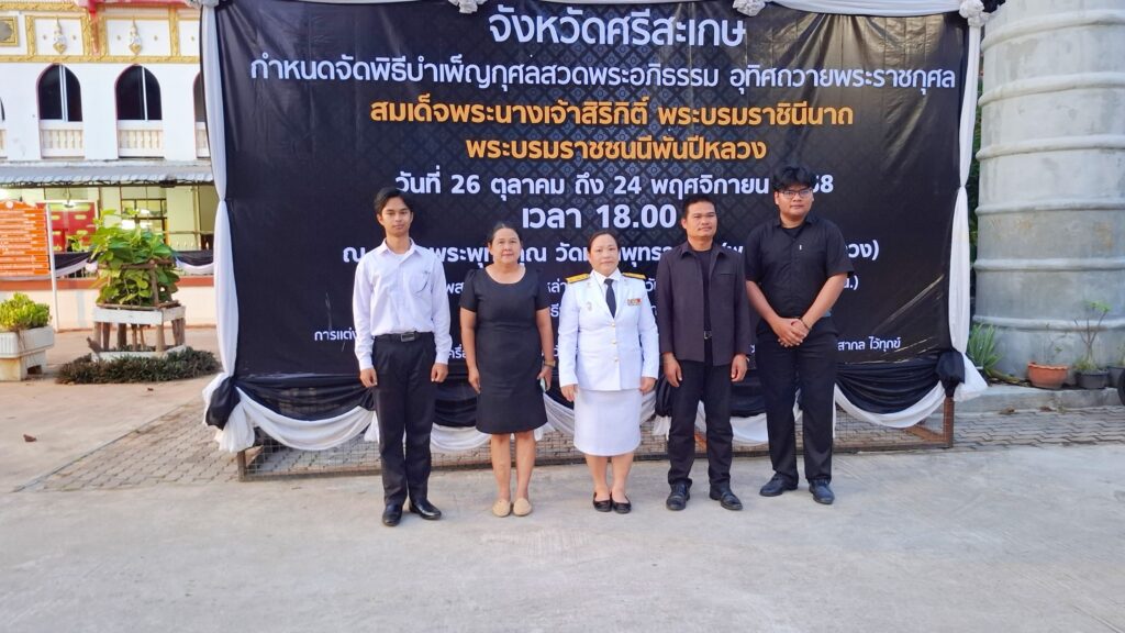 วันที่ 31 ตุลาคม 2568 นายวิโรจน์ ธิมา ผู้อำนวยการวิทยาลัยการอาชีพศรีสะเกษ มอบหมายให้ นางสาววาสนา ยานารมย์ รองผู้อำนวยการฝ่ายวิชาการ พร้อมด้วย คณะครู และบุคลากรทางการศึกษา เข้าร่วมพิธีบำเพ็ญกุศล อุทิศถวายพระราชกุศลแด่ สมเด็จพระนางเจ้าสิริกิติ์ พระบรมราชินีนาถ พระบรมราชชนนีพันปีหลวง โดยมี นายอนุพงศ์ สุขสมนิตย์ ผู้ว่าราชการจังหวัดศรีสะเกษ เป็นประธานในพิธี ณ ศาลาพระพุทธคุณ วัดมหาพุทธาราม พระอารามหลวง