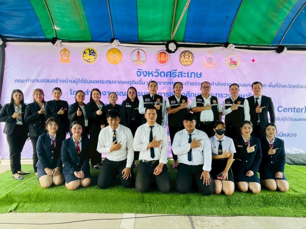 วันที่ 11 พฤศจิกายน 2568 นำโดย นายวิโรจน์ ธิมา ผู้อำนวยการวิทยาลัยการอาชีพศรีสะเกษ พร้อมด้วย คณะผู้บริหาร ครู และนักเรียน นักศึกษา ร่วมกิจกรรม Fix it – จิตอาสา มอบถุงยังชีพ และส่งมอบบ้านเรือนของประชาชนผู้ได้รับผลกระทบจากเหตุการณ์ความไม่สงบแนวชายแดนไทย – กัมพูชา พื้นที่ตำบลเสาธงชัยณ บ้านภูมิซรอลใหม่ ตำบลเสาธงชัย อำเภอกันทรลักษ์ จังหวัดศรีสะเกษ