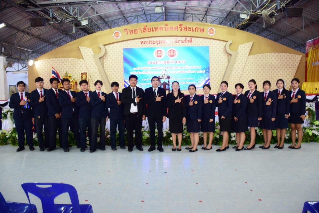 วันที่ 18 พฤศจิกายน 2568 นายวิโรจน์ ธิมา ผู้อำนวยการวิยาลัยการอาชีพศรีสะเกษ พร้อมด้วย คณะผู้บริหาร ครู บุคลากรทางการศึกษา และนายธนวรรธน์ ธนศิราศุภสิทธิ์ หัวหน้างานกิจกรรมนักเรียนนักศึกษา นำนักเรียน นักศึกษา องค์การนักวิชาชีพในอนาคตแห่งประเทศไทย (อวท.) วิทยาลัยการอาชีพศรีสะเกษ ร่วมพิธีเปิดงานประชุมวิชาการองค์การนักวิชาชีพในอนาคตแห่งประเทศไทย (อวท.) ระดับจังหวัดศรีสะเกษ ครั้งที่ 35 ประจำปีการศึกษา 2568 ระหว่างวันที่ 18 – 19 พฤศจิกายน 2568 โดยมี ดร.นิรันดร์ สมมุติ ผู้อำนวยการสำนักงานอาชีวศึกษาจังหวัดศรีสะเกษ เป็นประธานในพิธี ณ หอประชุมพระยาไกรภักดี วิทยาลัยเทคนิคศรีสะเกษ
