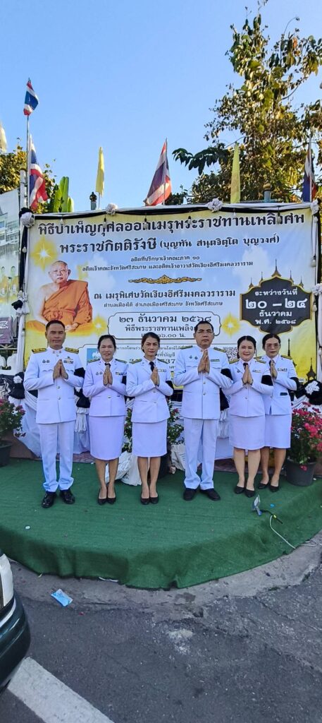 วันที่ 23 ธันวาคม 2568 นายวิโรจน์ ธิมา ผู้อำนวยการวิทยาลัยการอาชีพศรีสะเกษ พร้อมด้วย คณะครู ร่วมพิธีออกเมรุพระราชทานเพลิงศพ พระราชกิตติรังษี (บุญทัน สนฺตจิตฺโต) อดีตที่ปรึกษาเจ้าคณะภาค 10 อดีตเจ้าคณะจังหวัดศรีสะเกษ และอดีตเจ้าอาวาสวัดเจียงอีศรีมงคลวราราม เพื่อแสดงความเคารพและน้อมรำลึกถึงคุณูปการของพระเถระผู้ทรงคุณูปการต่อพระพุทธศาสนาและสังคม ณ เมรุชั่วคราว วัดเจียงอีศรีมงคลวราราม อำเภอเมืองศรีสะเกษ จังหวัดศรีสะเกษ